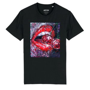 „BLACK LIPSTICK” Organinės medvilnės unisex marškinėliai