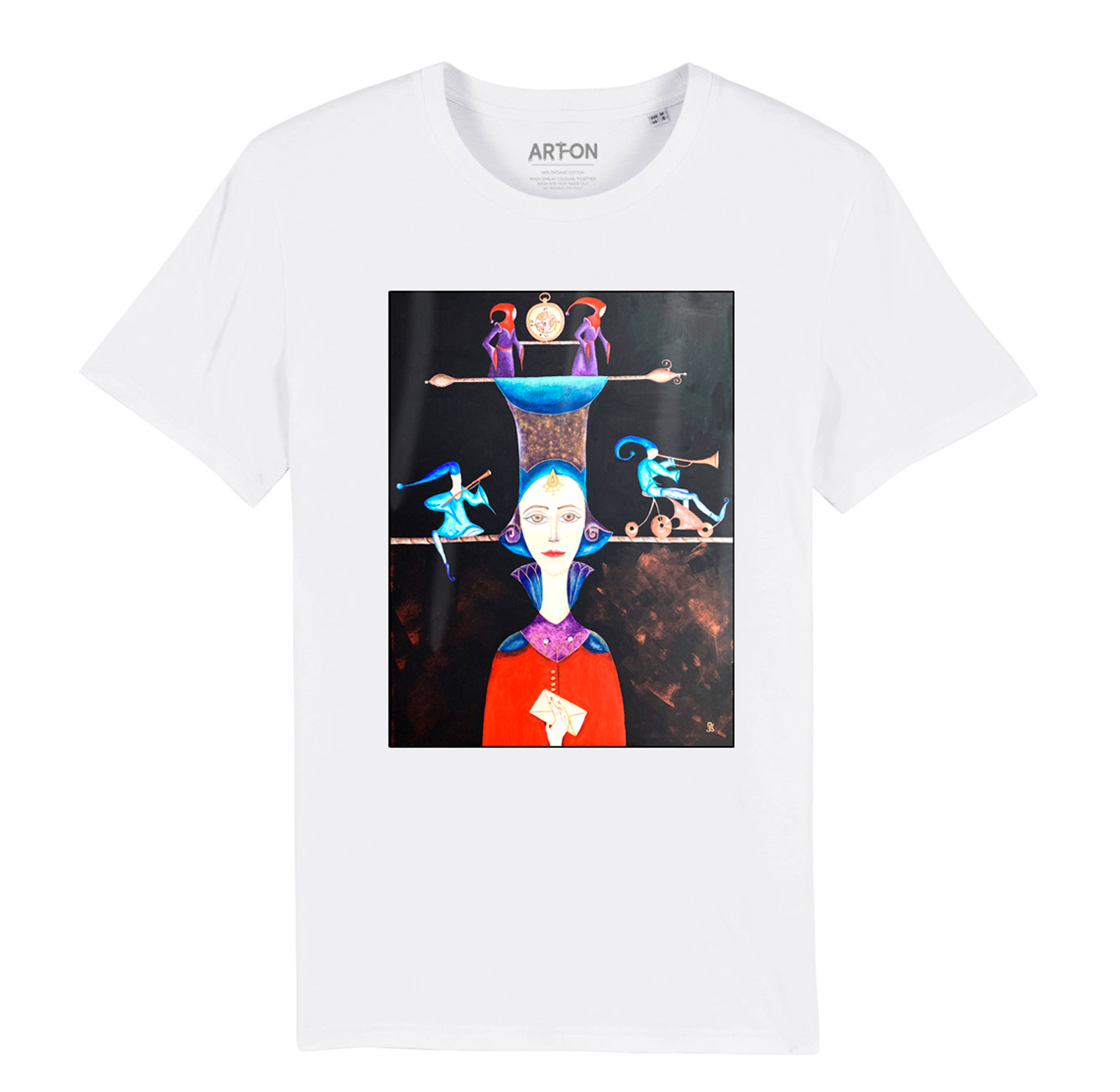 Balti marškinėliai tiks tiek vyrams, tiek moterims.